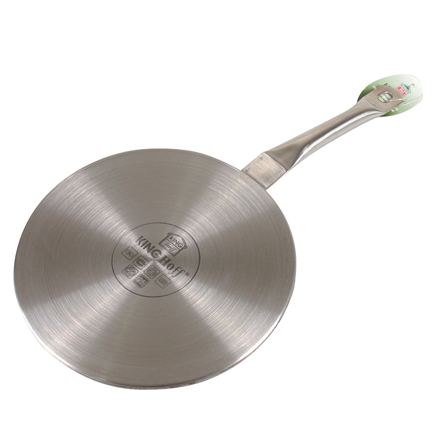 - Малого диаметра (15–21 см). Такой кухонный аксессуар подходит для посуды с диаметром дна до 22 см. Изделие изготовлено из нержавеющей стали с алюминиевой прослойкой, оснащено ручкой, которая будет холодной даже когда поверхность переходника будет разогрета до предельной температуры.