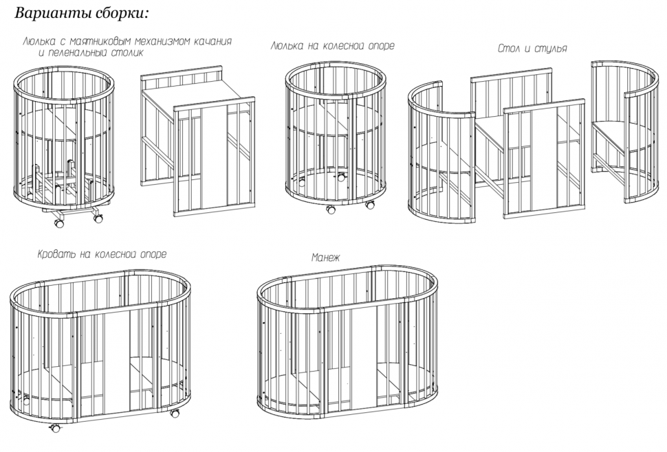 2. Кроватки могут быть на ножках, на колесиках, на полозьях. Функциональность этих нюансов можно оспорить.