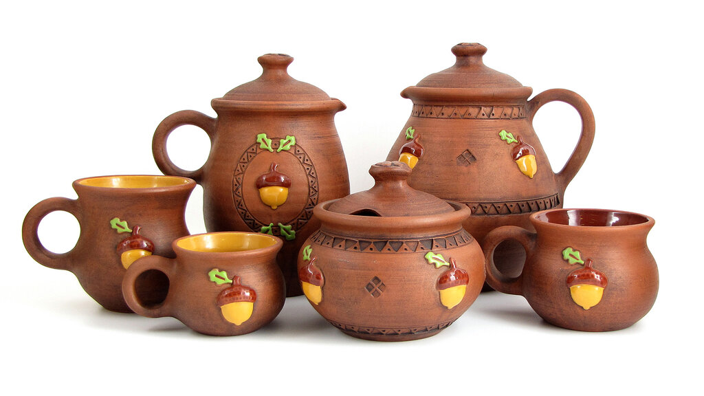 Глиняная посуда превосходный вариант для хранения продуктов – в ней несколько дней не будет скисать молоко, а кофе и чай долго могут сохранить напиток горячим. Варенье, соленья и маринады не имеют плесени. А если в чаше из такого материала хранить муку, то жучков не будет.