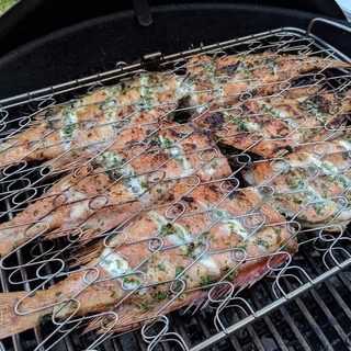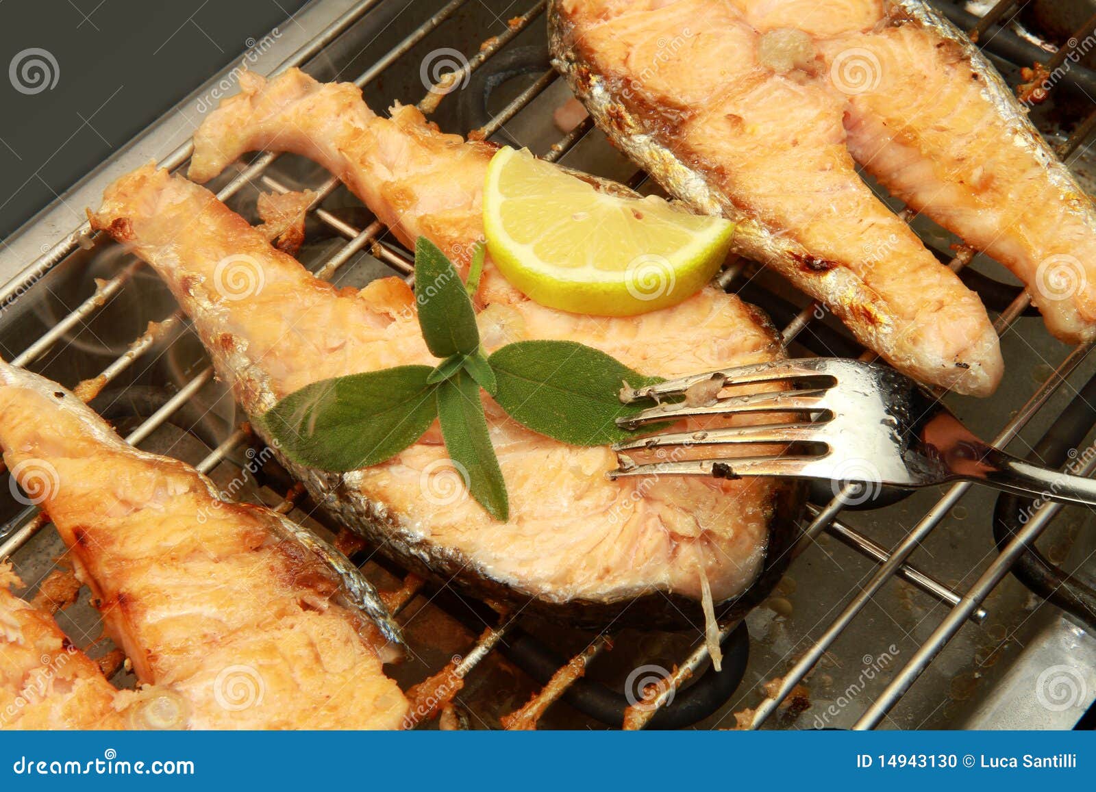 При приготовлении на гриле на сильном огне необходимо предварительно нагреть его, и лучше смазать пищу, а не решетку маслом, перед приготовлением на гриле, чтобы предотвратить пригорание. Блюдо необходимо перевернуть на полпути, чтобы оно равномерно подгорело (следы гриля) с обеих сторон.