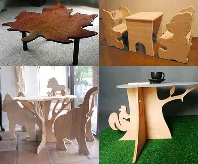А вот полностью раскрыть свою сущность, отдельно взятый предмет мебели может только в конкретном помещении. Именно поэтому, выбирая креативный стол из фанеры, нужно учитывать дизайн комнаты, ее функциональную нагрузку, цветовую гамму.
