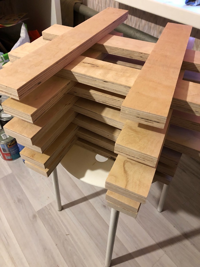 - Если фанера не слишком толстая, делаем ножки из двух слоев.