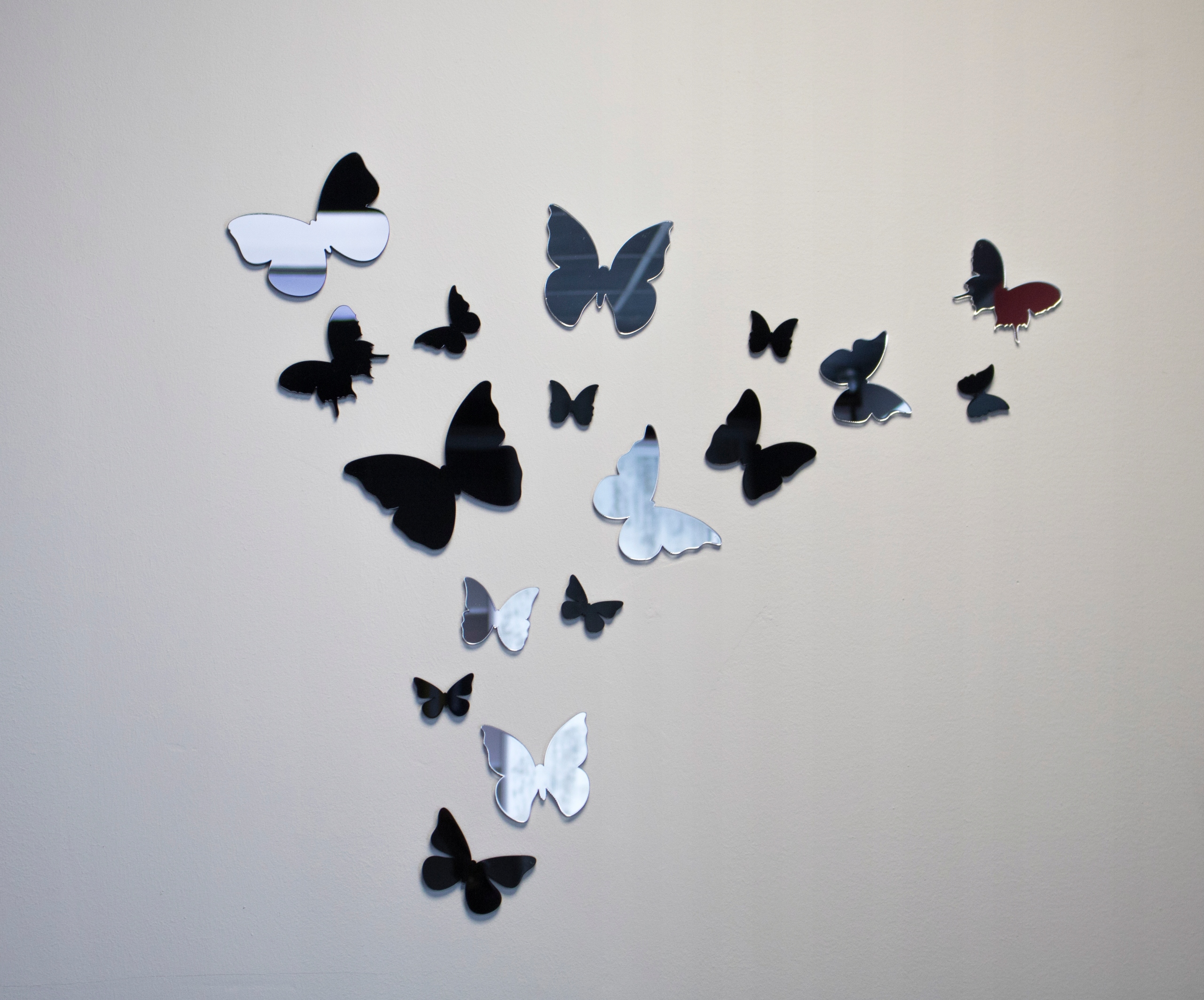 - Создайте на стене или потолке неповторимый арт-объект: расположите бабочек хаотично или в форме рисунка.