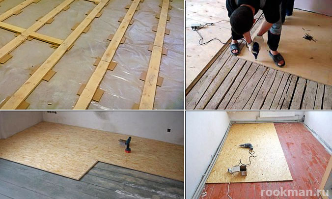как правильно класть на деревянный пол, какое покрытие лучше стелить на бетонное основание, какая толщина нужна, технология настила своими руками