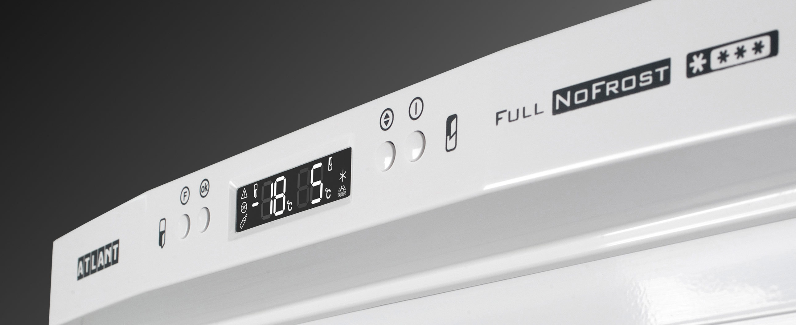 Наличие системы No Frost имеет то преимущество, что нет необходимости в ручной разморозке холодильника Атлант. Система предполагает работу агрегата по определенному алгоритму, согласно которому испаритель размораживается в автоматическом режиме. На неисправность холодильника указывает намерзание толстой ледяной корки.