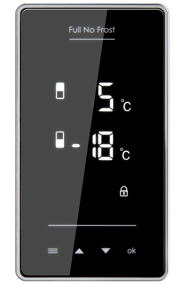 При включении красного цвета верхней панели дисплея морозильная камера набирает заданную температуру. При достижении температуры индикация погаснет, останется только зеленое свечение.