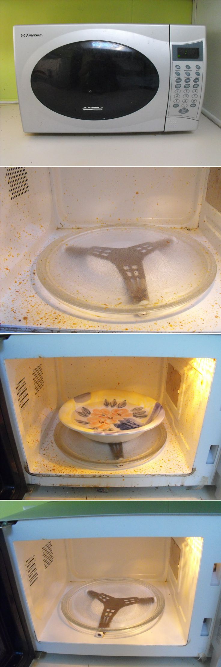 • Это улучшит запах вашей микроволновой печи! Выдавите лимон в стакан с водой. Положите в чашку и оставшийся лимон и поставьте в микроволновую печь примерно на 1 1/2 минуты. Подождите, пока он не остынет, и снова поставьте в микроволновую печь на минуту. Протрите микроволновую печь влажной тряпкой, и она должна лучше пахнуть! Удачи. Лиза