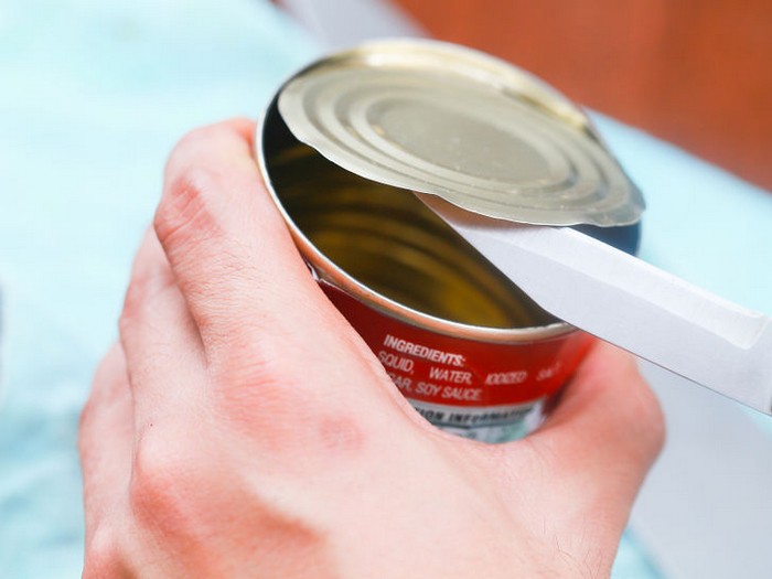 Открывать банку ножом следует очень осторожно. При этом не следует держать ее на коленях или между ног – нож может соскользнуть, что приведет к порезу.