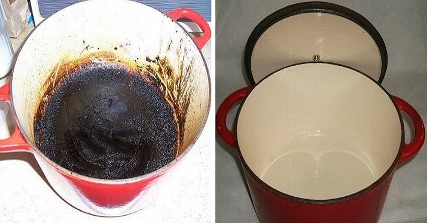 Благодаря такому приему можно не только легко очистить пригоревшие остатки еды, убрать темные пятна и вернуть посуде первоначальный блеск.