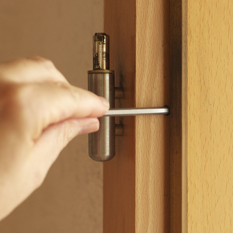 - Проверьте, какой тип доводчика установлен. Большинство доводчиков монтируются в верхней части двери или над ней на косяке. Однако в некоторых дверях используются внутренние модели, скрытые внутри дверной коробки.