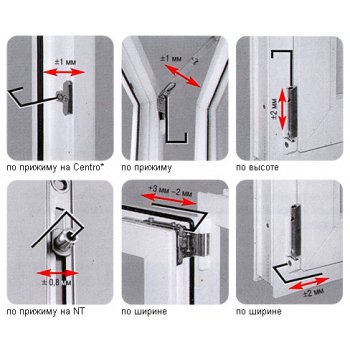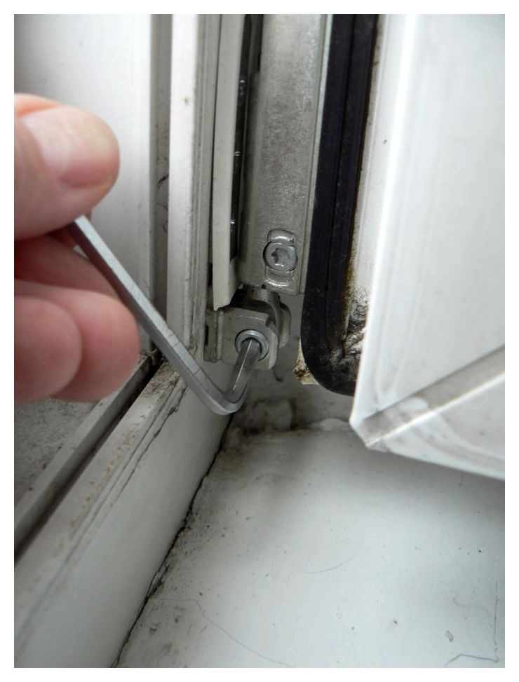 Регулировка прижима пластиковых дверей. С помощью этой регулировки устраняются возможные сквозняки и продувания. В большинстве случаев она производится вращением специальных эксцентриков, расположенных на торце дверного полотна.