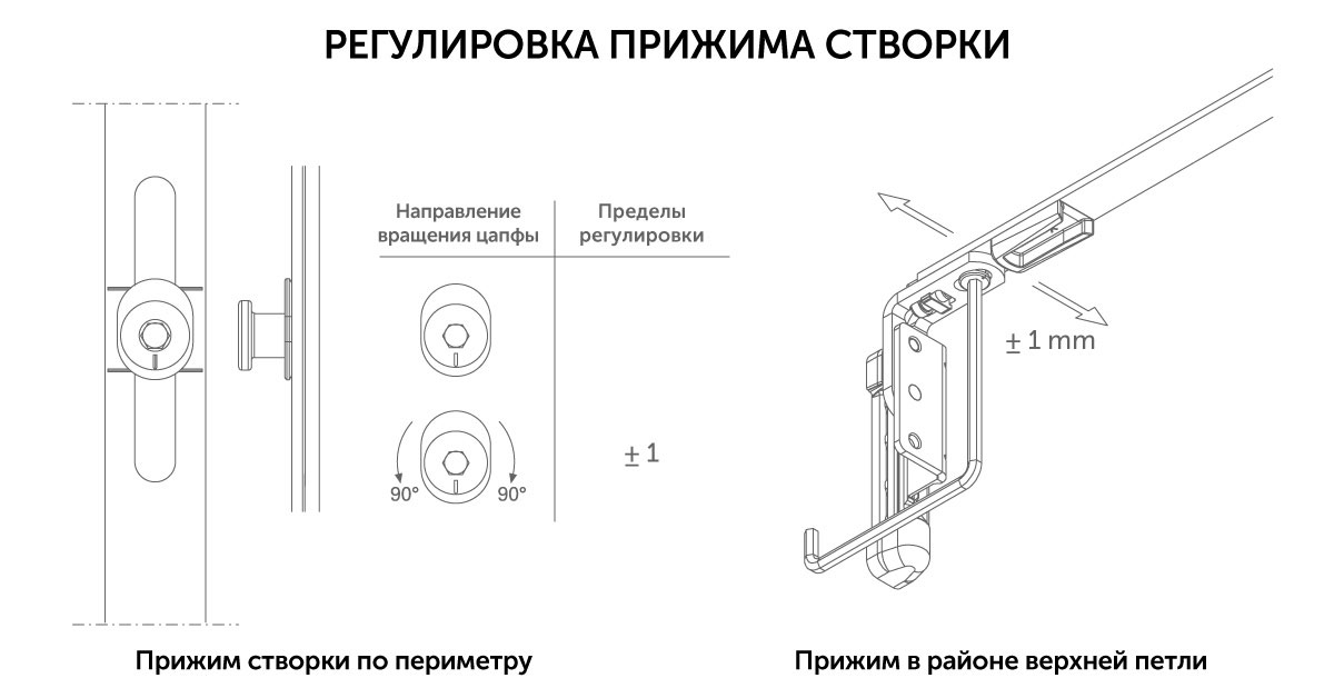 Это еще не все – эти эксцентрики обеспечивают качество прилегания полотна только в районе ручки, и чтобы получить полностью герметичное закрывание, дополнительно нужно отрегулировать прилегание полотна и со стороны навесов.