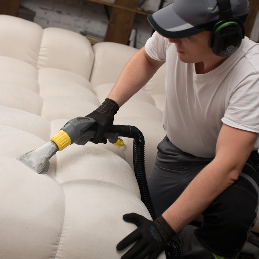 При использовании моющего пылесоса таких проблем не будет. Перед началом чистки мы бы советовали провести тест на взаимодействия чистящего средства с материалом. Попробуйте обработать маленький кусочек поверхности на тыльной части дивана, если цвет материала не изменится — можно смело делать полную обработку.