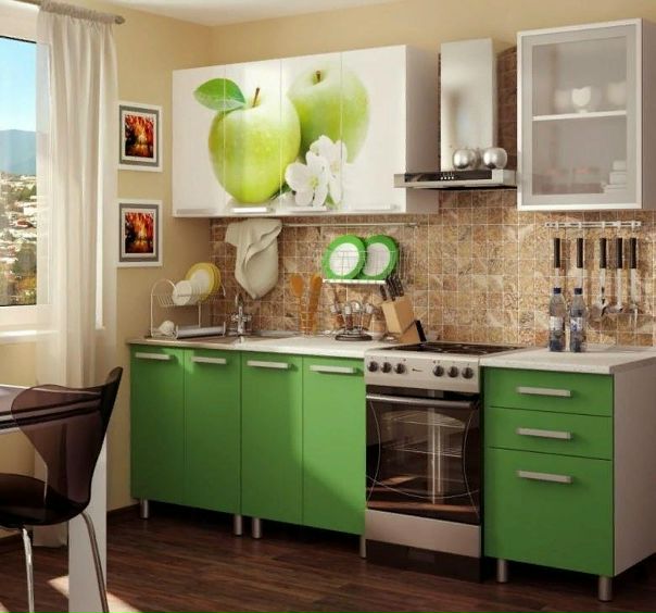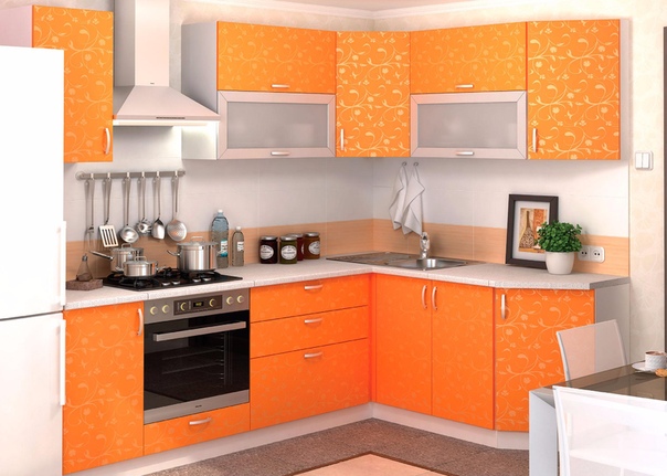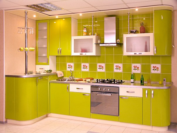 Если бюджет ограничен, можно купить недорогой кухонный гарнитур в пастельных тонах, а в качестве дизайнерского акцента выбрать максимально эффектный фартук премиум-класса.