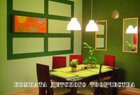Если гарнитур выполнен в ярких привлекающих внимание, тонах, то желательно будет покрасить стены в более спокойные и нейтральные цвета или наоборот.
