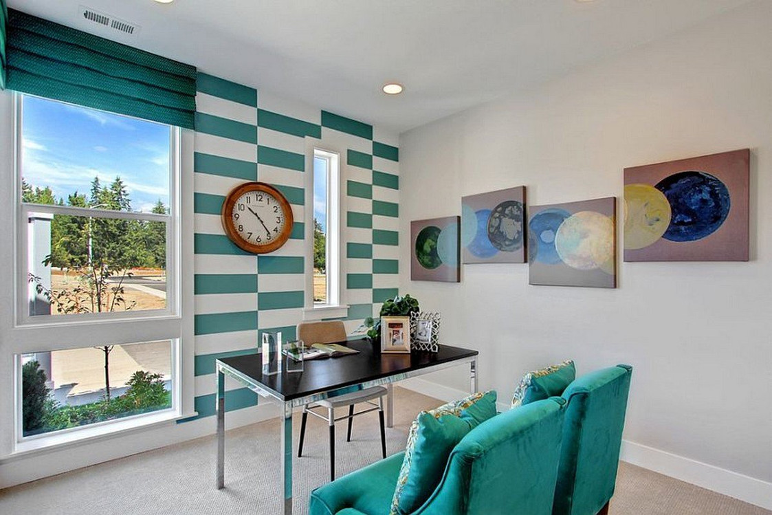 - Диагонально расположенные полосы делают помещение динамичнее.