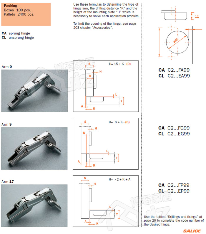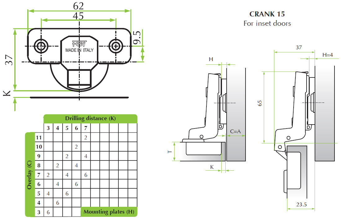 Чашки большинства стандартных петель европейского стандарта устанавливаются в отверстие диаметром 35 мм, просверленное в двери. Это отверстие должно быть правильно расположено для правильной работы петли и обеспечения надлежащей регулировки во всех направлениях.