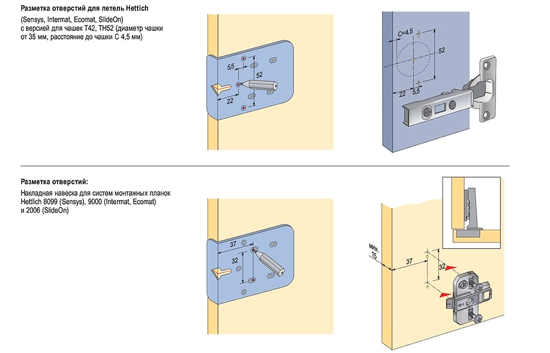 Чтобы не ошибиться при установке фурнитуры, необходимо знать некоторые тонкости, связанные с монтажом мебельных петель.