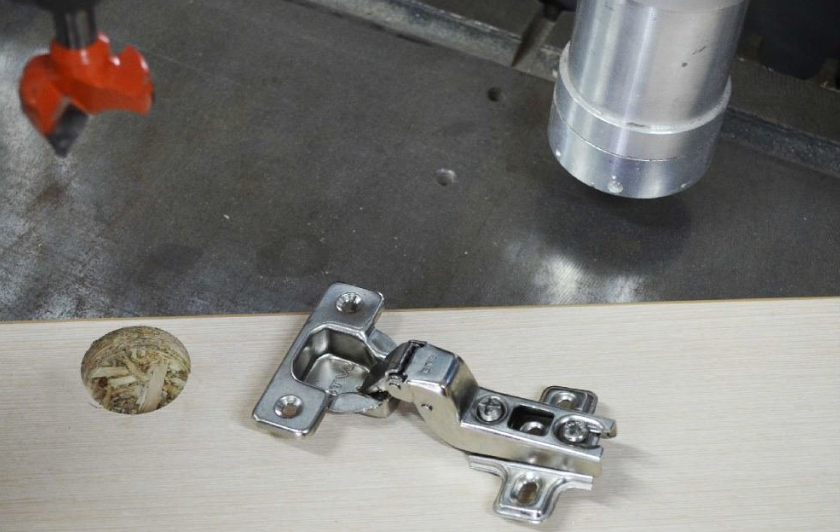 Для того чтобы сделать проем, потребуется сверло 34 мм. Оно позволит просверлить отверстие необходимой глубины. Обычно данный показатель равен 13 мм. Для этого сверло вставляют в дрель. При проведении работ держат инструмент под углом девяносто градусов. Если изменить данное положение, то неизбежно появление щелей, сколов и прочего, что может испортить внешний вид мебели.
