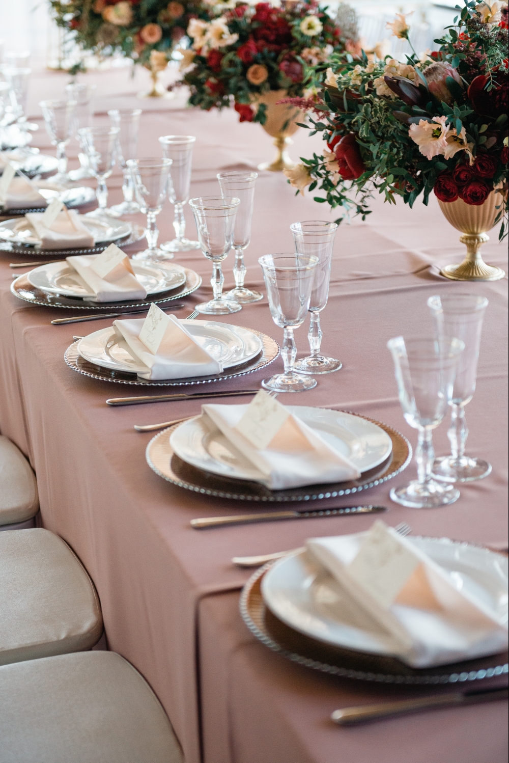 Высший пилотаж — умение сочетать неизменные правила этикета с текущими модными тенденциями. На фото: оформление праздничного стола в тонах и оттенках вокруг цвета года — «марсала»