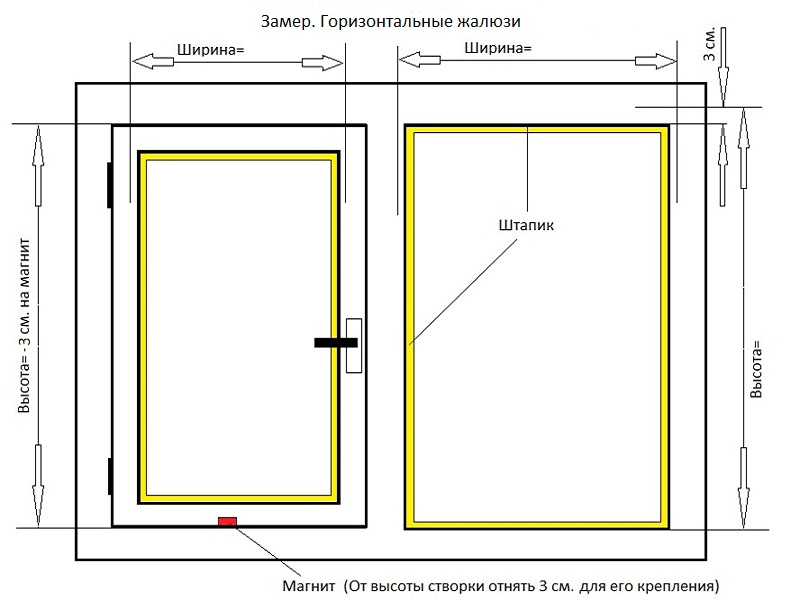 Измеренная таким образом ролета полностью закрывает стеклопакет и штапик окна, что обеспечивает максимальное перекрытие проема.