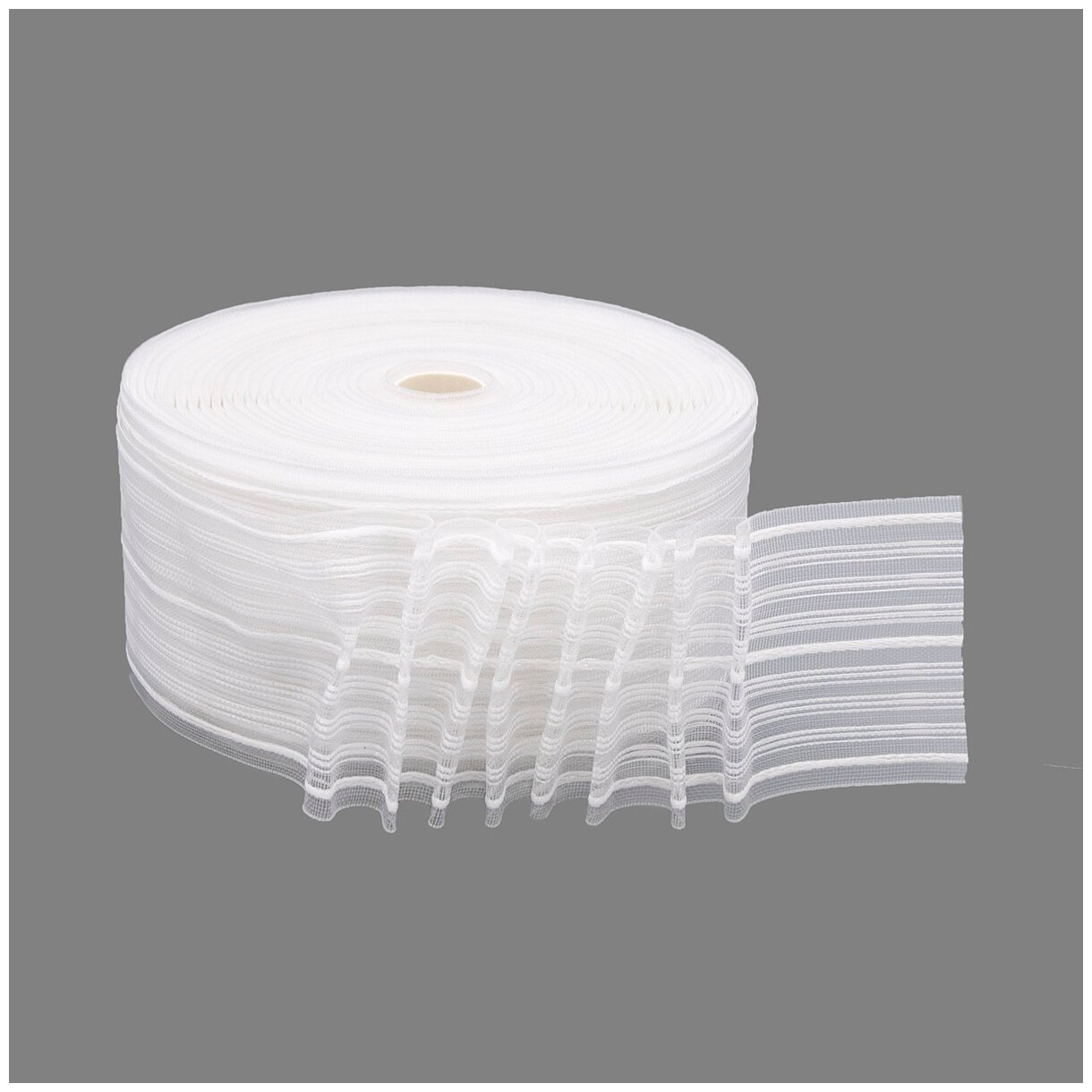 Ширина шторы должна быть больше длины карнизы минимум в 1,6 раза, для того чтобы можно было зашторить окно. При изготовлении этих штор верхний срез ткани проклеивается специальной люверсной лентой. Люверсная лента бывает двух видов – прозрачная для легких и прозрачных тканей и непрозрачная для штор из непрозрачных тканей.