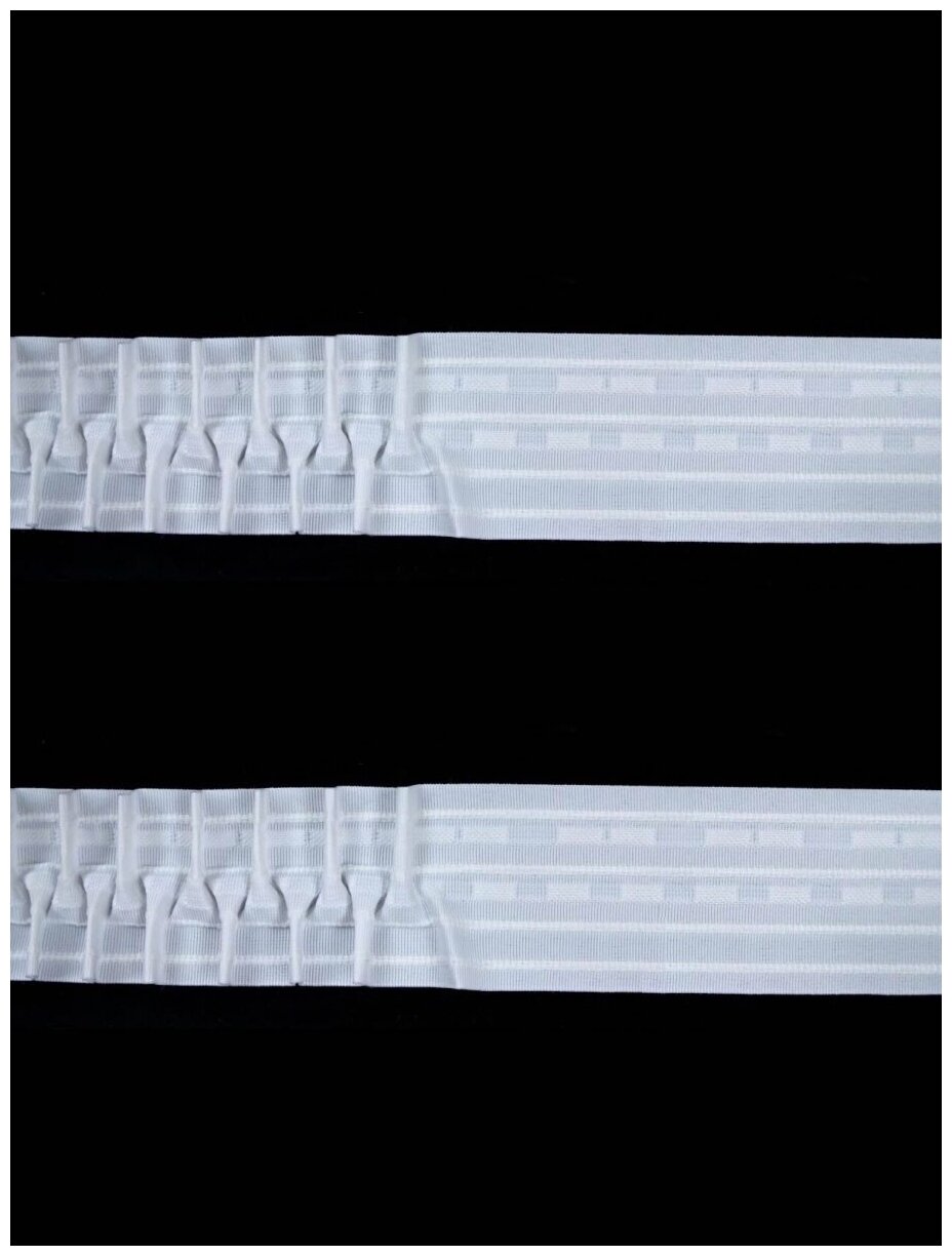 Широкая подходит плотным шторкам, позволяет выполнять многочисленные техники стягивания тканей. Также есть множество способов крепления штор на карнизах, струнах и т.п. Поэтому лента, предназначенная для струны, никак не пойдет для карнизов.
