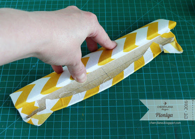 Поместите выпуклую сторону лицевой стороной вниз на «изнаночную» сторону ткани и проутюжьте ее на месте. (Обычно мне не везет с промежуточным слоем, если мой утюг слишком горячий и если я оставляю его там слишком долго. Это как бы сжигает клей, и тогда ваши слои не будут склеиваться. Так что имейте это в виду.)