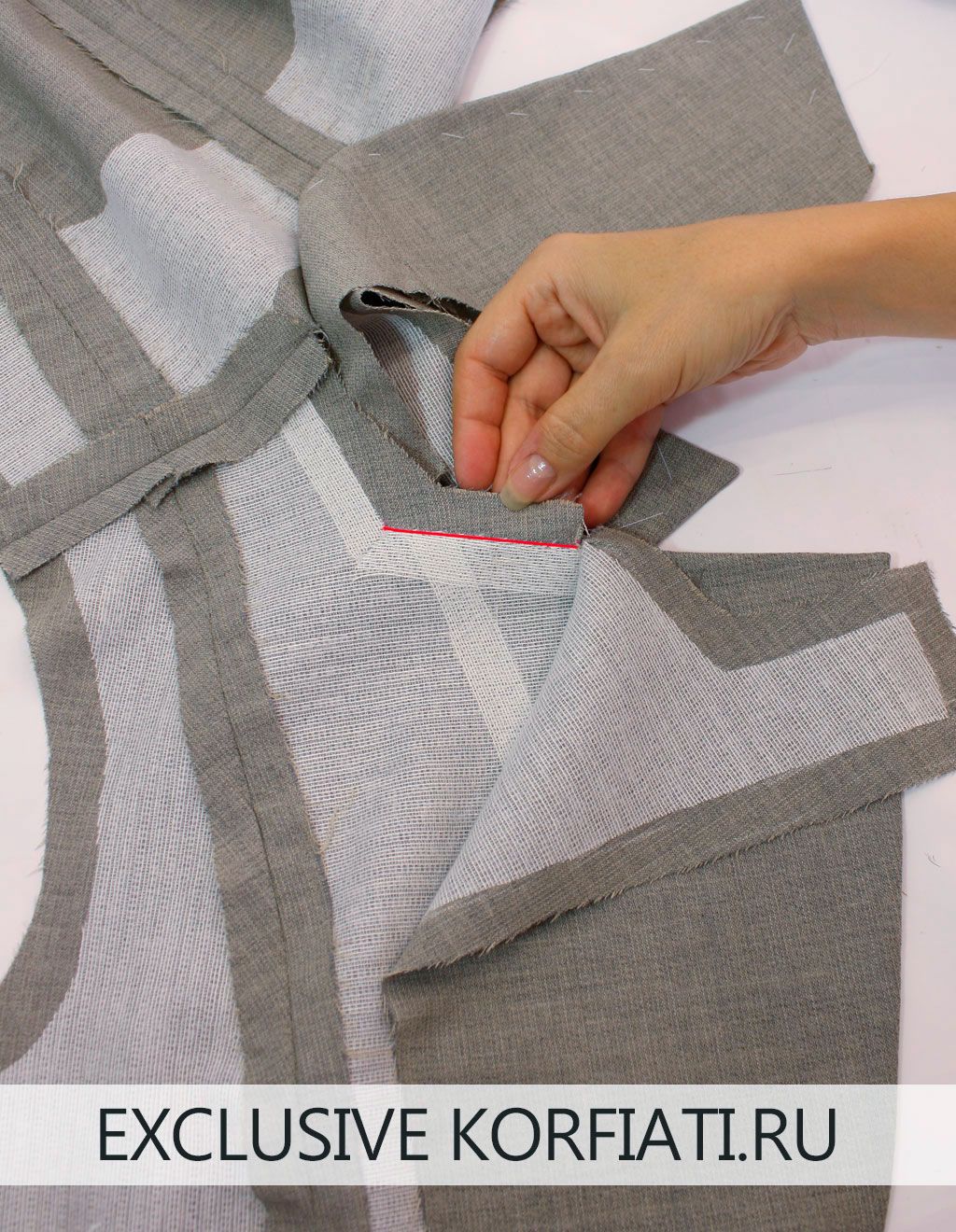 Дублирование ткани флизелином осуществляется до момента стачивания вытачек и притачивания отрезных деталей.