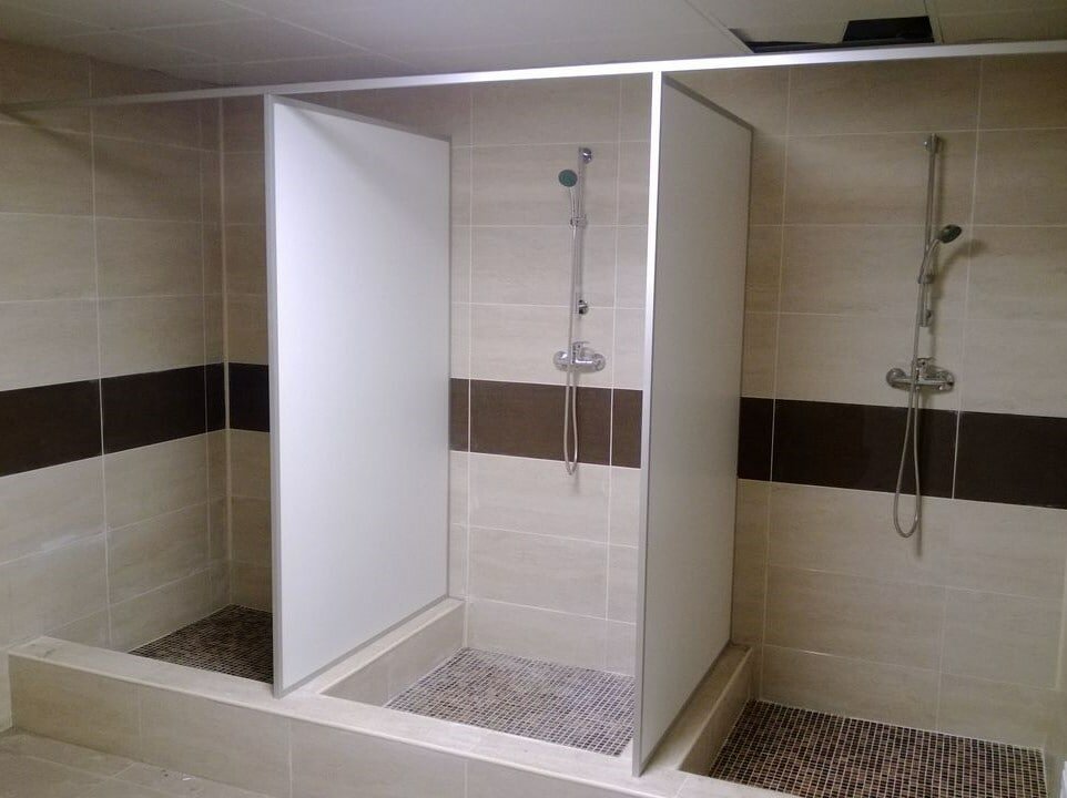 - Радиусные — это самый дорогой и сложный в реализации вариант. Они имеют форму полуовала (как в душевых кабинах). Устанавливают такие конструкции только в большие по площади помещения, так как они требуют много пространства.