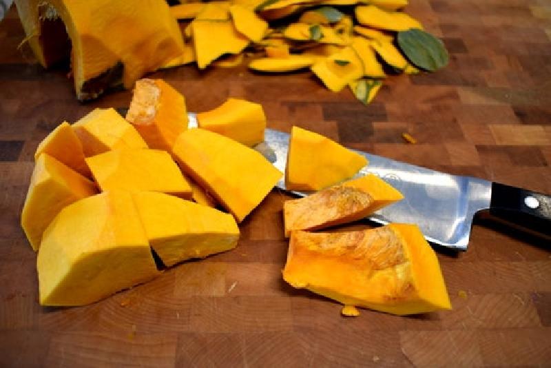 - Нарежьте тыкву кубиками размером 1 дюйм.