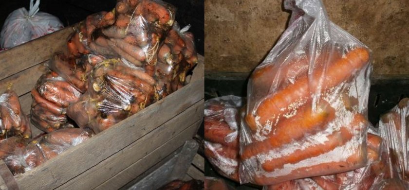 Когда нужно морковь доставать из холодильника, пакет развязывают, берут, сколько необходимо и обратно его закрывают. При этом следует посмотреть, нет ли внутри порченых корнеплодов.