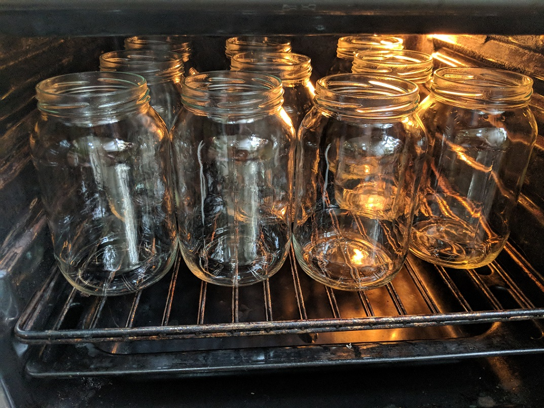 Вымойте стеклянные банки и их крышки горячей водой с мылом. Поместите их, пока они еще влажные, не касаясь внутренней части банок и крышек, на противень, застеленный чистым кухонным полотенцем.Убедитесь, что вы разместили их открытыми сторонами вверх. Ставим противень в духовку на 35 минут.