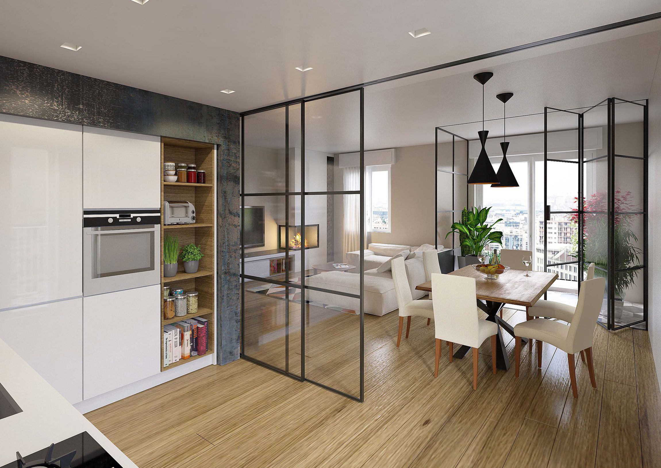 как отделить кухню от гостиной комнаты стеклянной перегородкой и аркой, раздвижные системы для спальни