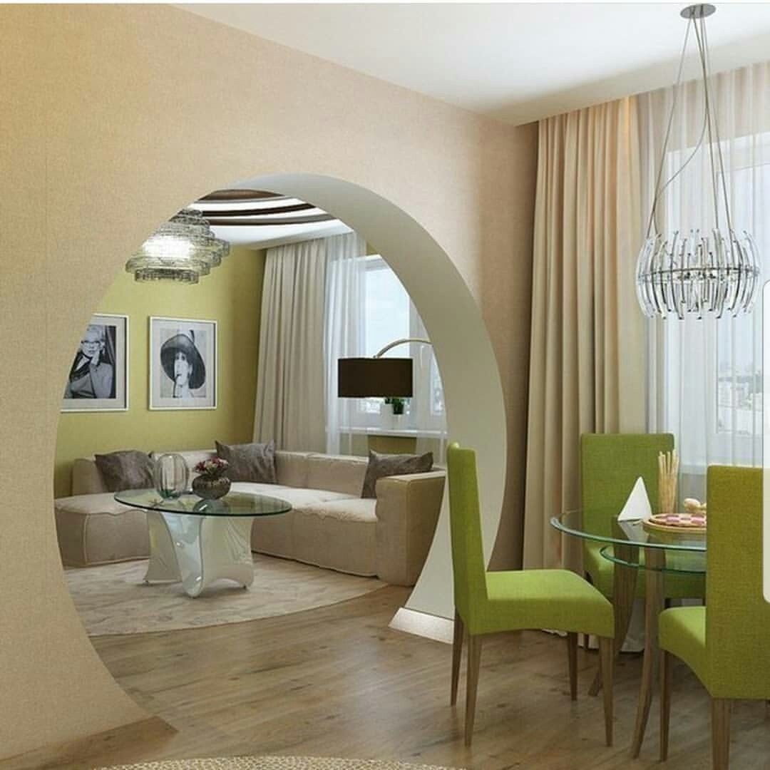 - Разделить помещение на зоны можно с помощью арок и колон.