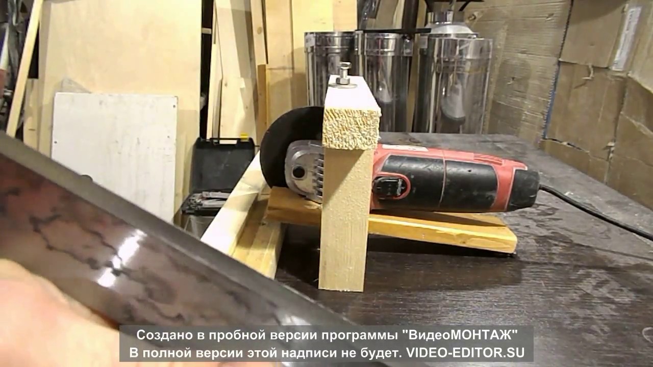 Не забудьте продумать кнопки включения и выключения. На планшайбу нужно поставить кожух, срезав одну сторону, с которой и будет выполняться заточка. Также в нижней части столешницы потребуется сделать вырез под пылесос. Данный станок также подойдет для работы с другими режущими поверхностями.