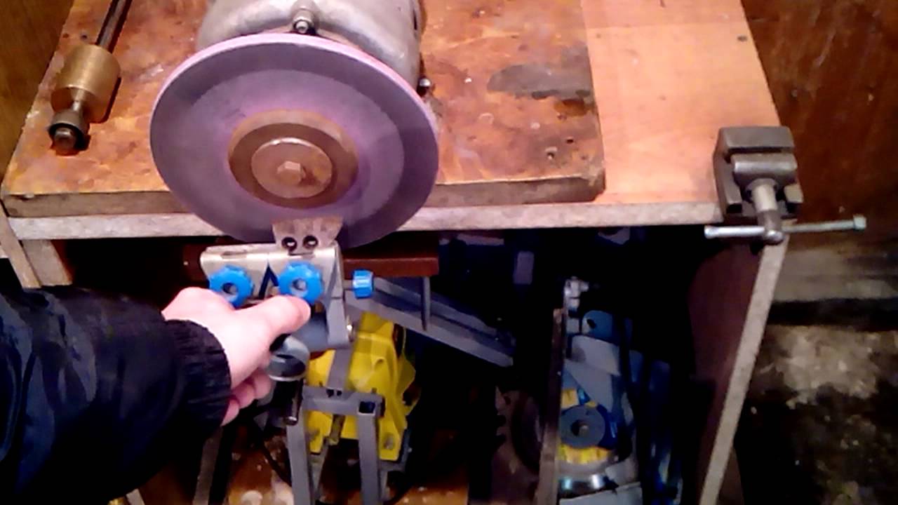 Установив угол наклона в нужную позицию, можно приступать к самому процессу заточки.