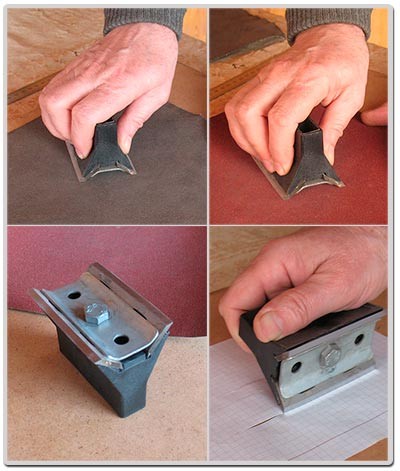 Другое дело если Вы живёте вдали от таких центров, да и не всегда есть возможность заточить в мастерской ножи. Вот и приходится изобретать специальные устройства для заточки ножей. Безусловно, если у вас имеется наждак, то такая процедура, будет проходить легче, чем точение ножей вручную на плите, с наждачной бумагой.
