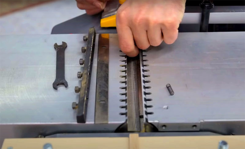 При проведении заточки, под платформу подкладываются подкладки, необходимой толщины для стачивания плоскости ножей.