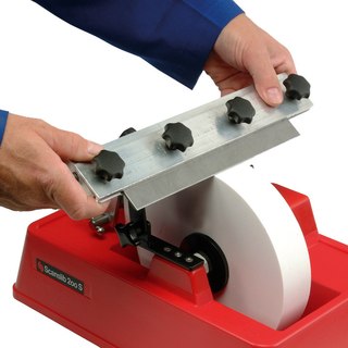 Еще одной неприятностью во время заточки станет постоянное засаливание точильного камня, что сказывается на продолжительности данной работы. Лучше всего периодически чистить его предусмотренным для этого бруском SP-650. При работе с мягким металлом, заточка пройдет гораздо быстрее и камень придется чистить реже, потому что такой материал снимается достаточно массивными участками.