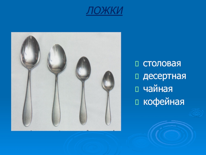 Для сервировки стола используются следующие виды ложек: