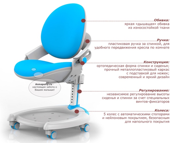 Такие стулья отличаются по дизайну, но их объединяет одно — возможность регулировки под параметры и потребности ребенка. Конструкции подходят для дошкольного и школьного возраста. Основные достоинства: