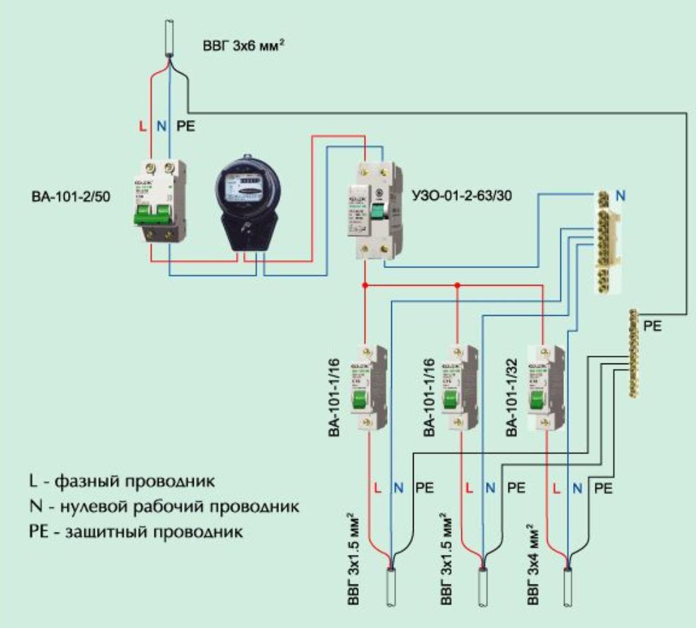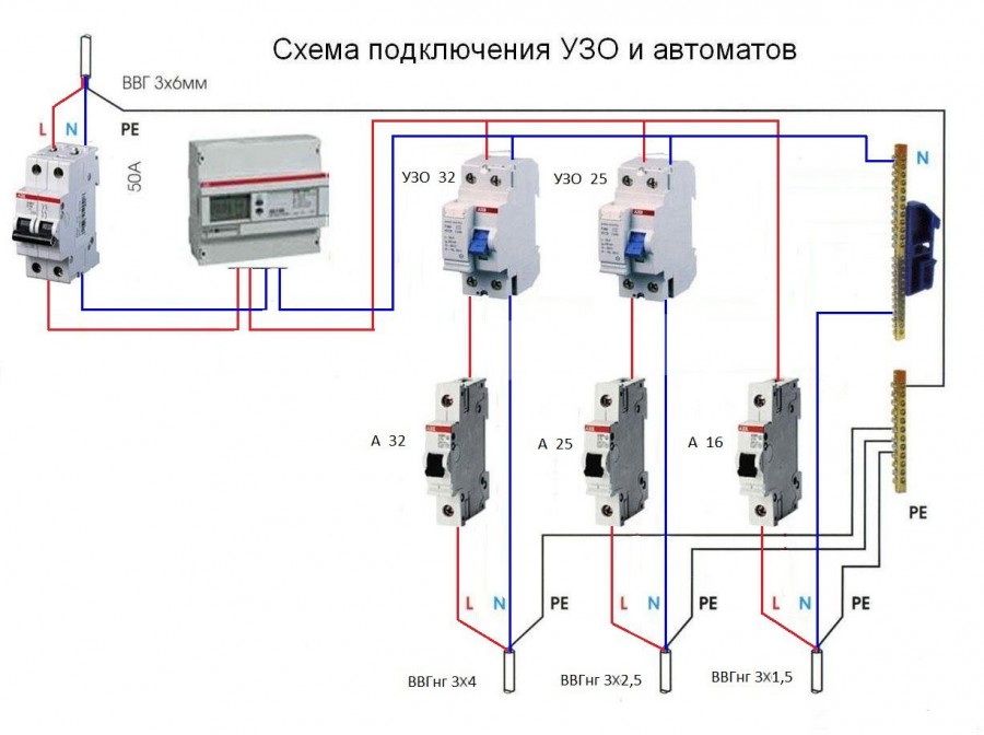 Еще одним обязательным средством от поражения электрическим током является устройства защитного отключения (УЗО). Про это устройство у меня на сайте посвящен отдельный раздел — изучайте. Здесь единственное скажу, что его уставка должна быть не больше 30 (мА).