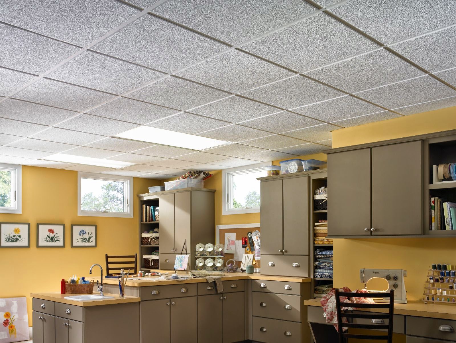 Если вся ваша кухня яркая и зеленая, вам не нужно, чтобы потолок был серым и белым.