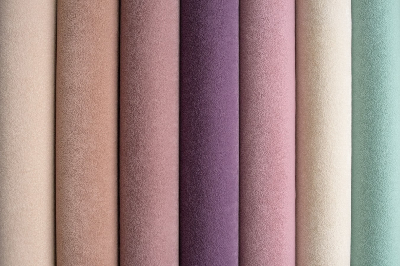 Флокированные ткани выполнены из волокон с мелким ворсом. Синтетические волокна, из которых состоит этот ворс, прикреплены к тканевой основе.Они очень популярны в качестве обивочных тканей.