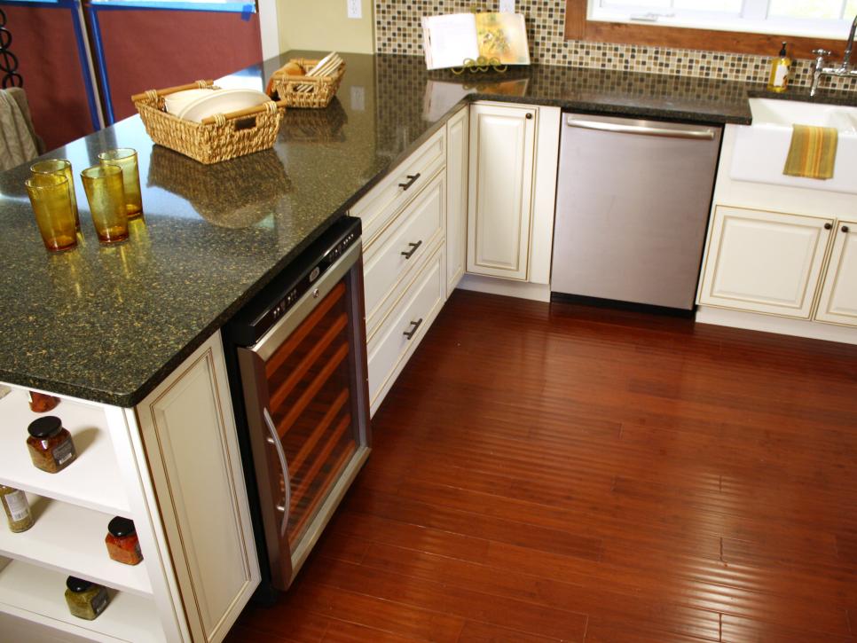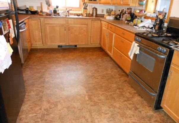Если пол уложен правильно, почти все типы кухонных напольных покрытий должны доходить до стен, под всеми шкафами.К сожалению, часто, как правило, по бюджетным соображениям, полы на кухне не укладываются правильно.