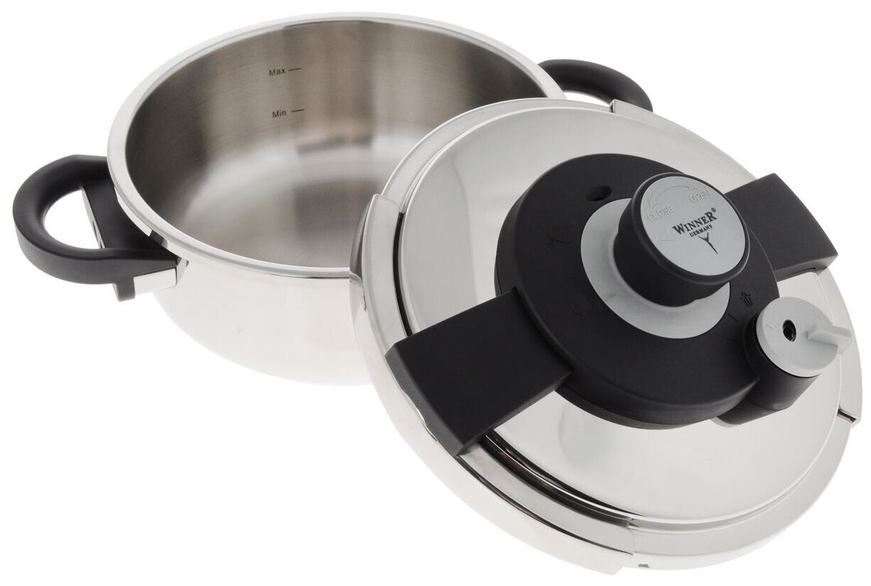 Как работает скороварка? Специальная кастрюля имеет клапан, позволяющий регулировать давление внутри. Посуда полностью герметична, поэтому использование ее является вполне безопасным. После завершения процесса приготовления еды вы используете клапан для восстановления давления и уже при нормальном показателе открываете крышку. Собственно, при высоком давлении внутри вы даже не сможете просто так открыть крышку, так как она будет сильно удерживаться.