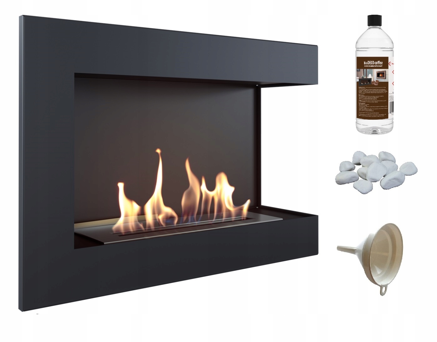 В стандартном комплекте присутствуют горелка, емкость для топлива, кочерга, декоративный портал.