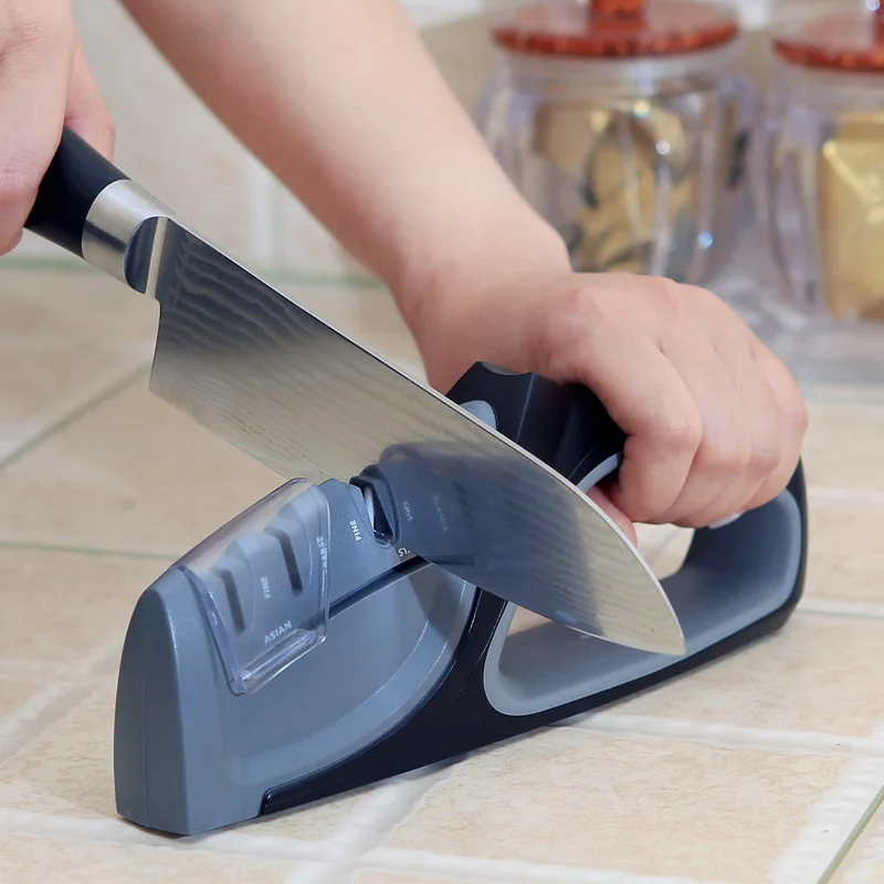 Если вам приходится самостоятельно возвращать остроту кухонному инструменту, придётся позаботиться о помощнике. В отсутствие мужчины, которому можно поручить важное дело, доверить заточку дама может только точилке — электрической или ручной.