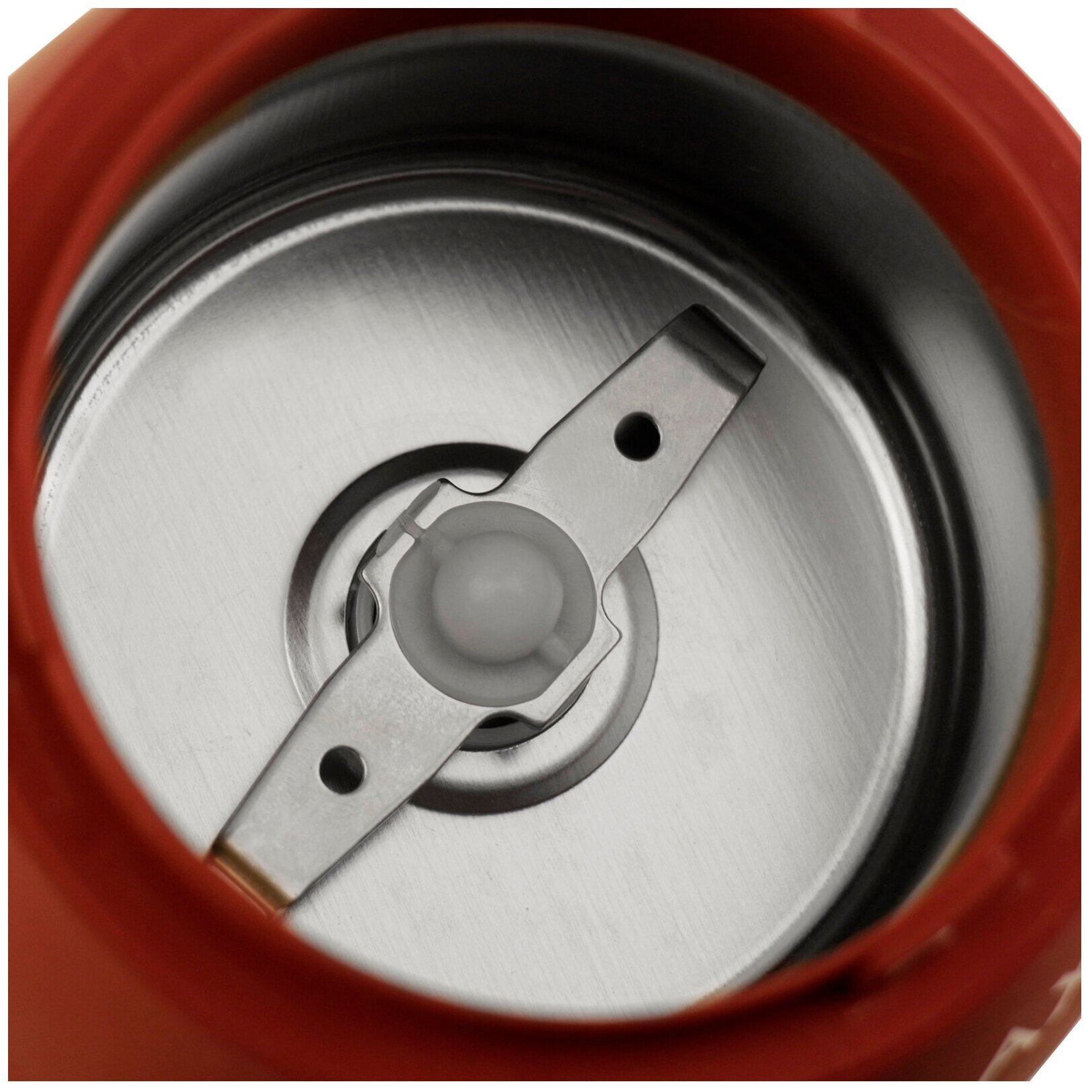Роторный (ножевой) аппарат бывает ручным или автоматическим. Он имеет только одну емкость, предназначенную и для зерен, и для готового порошка. Вместимость ее, в зависимости от модели, составляет 40–120 г. Вращающийся нож закреплен на дне чаши. На степень помола в такой кофемолке влияет длительность ее работы.